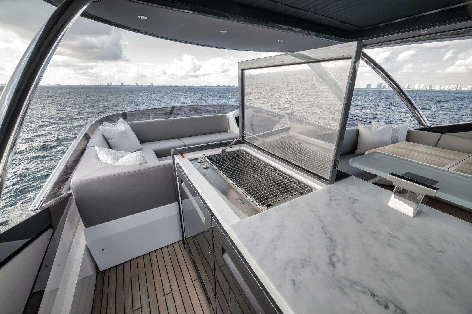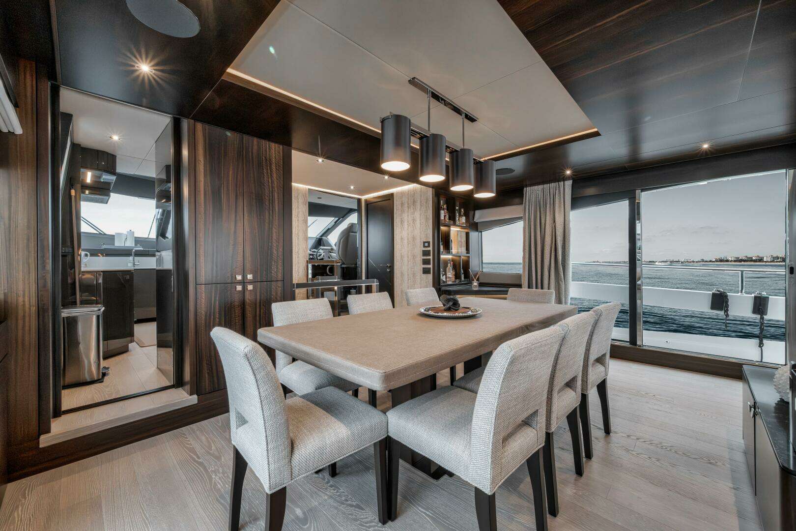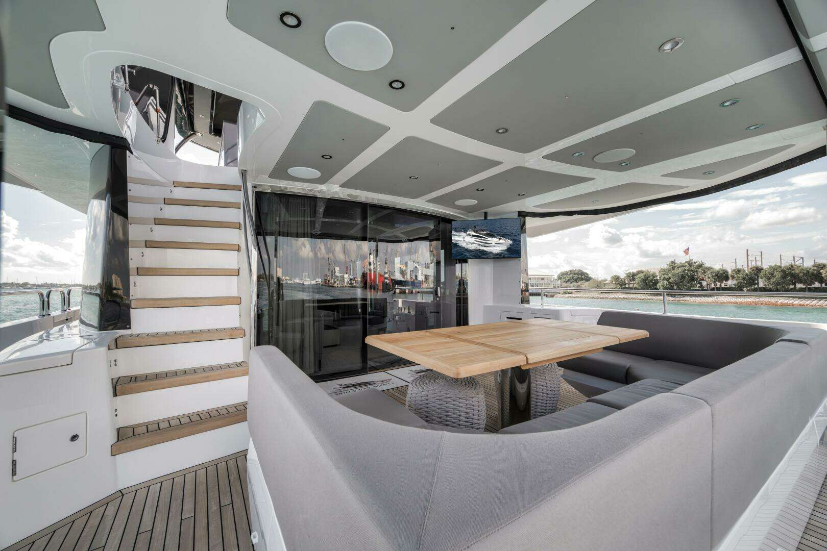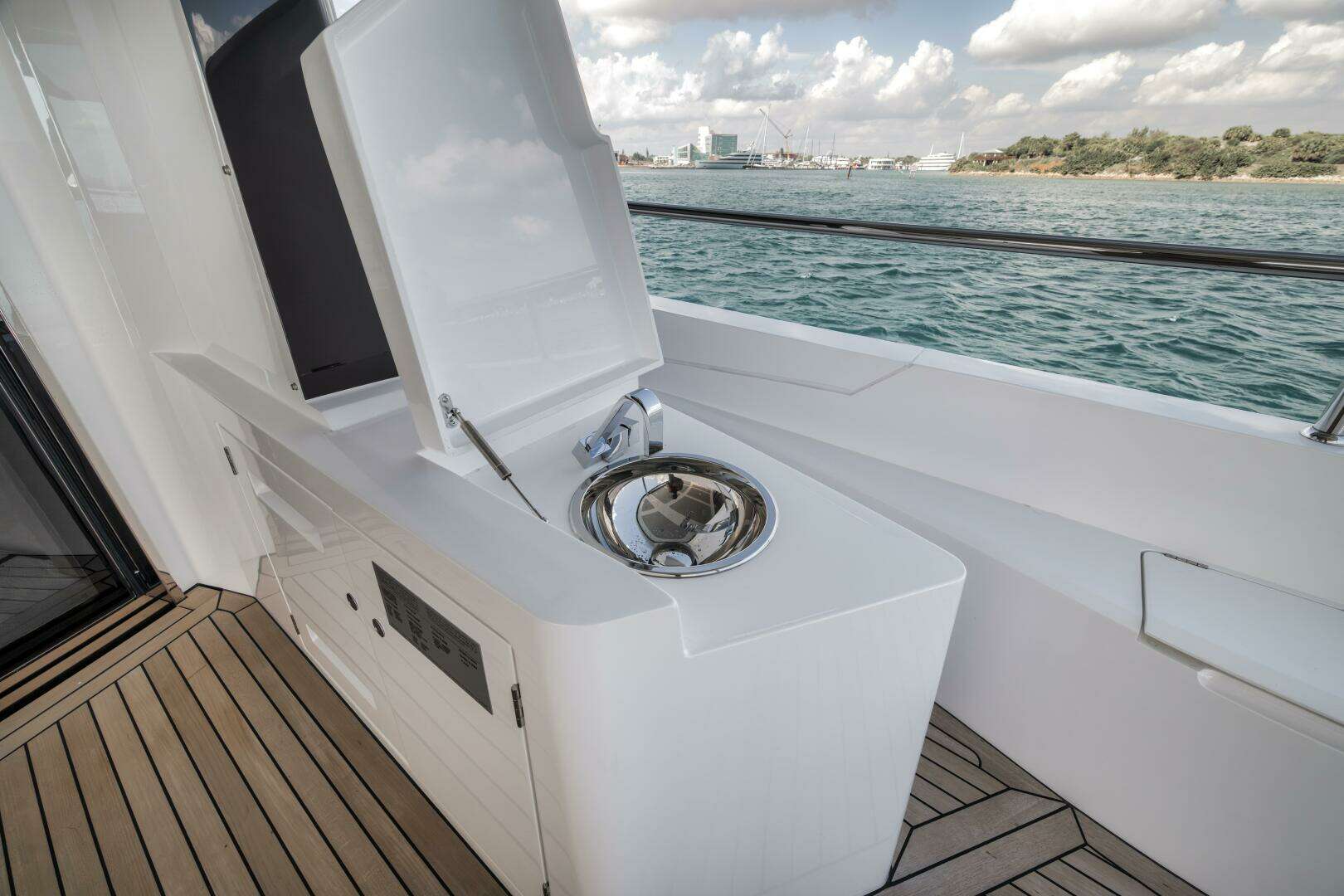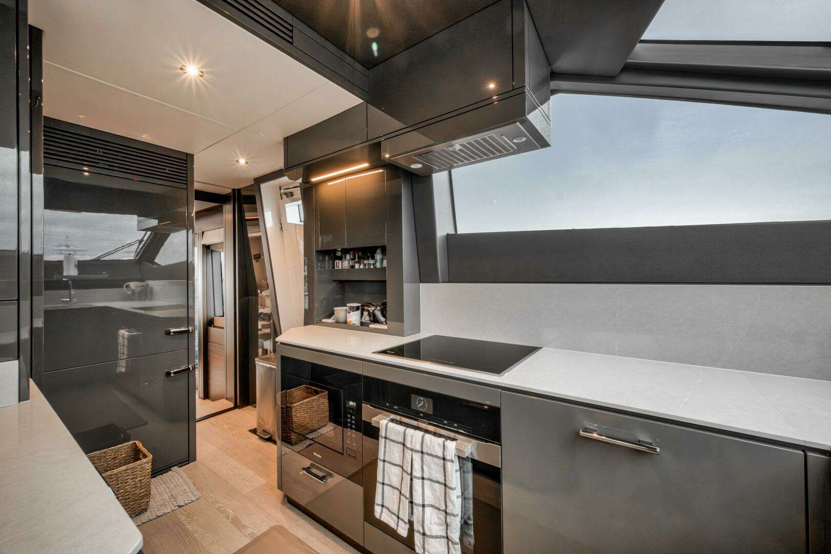The Sunseeker 88 Yacht is known for its striking exterior lines, expansive outdoor entertaining areas, and refined interior craftsmanship. The layout offers generous accommodations with a large master and VIP, abundant natural light, and versatile social spaces ideal for both day yachting and extended cruising. She features the optional main-deck day head.