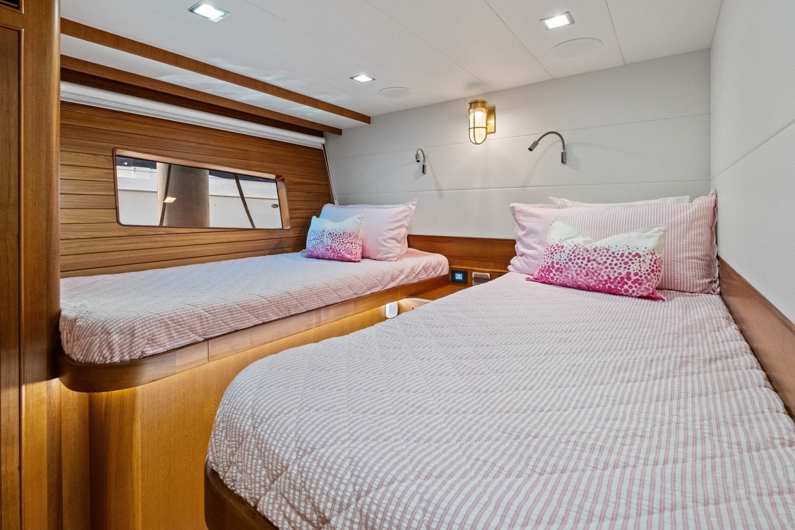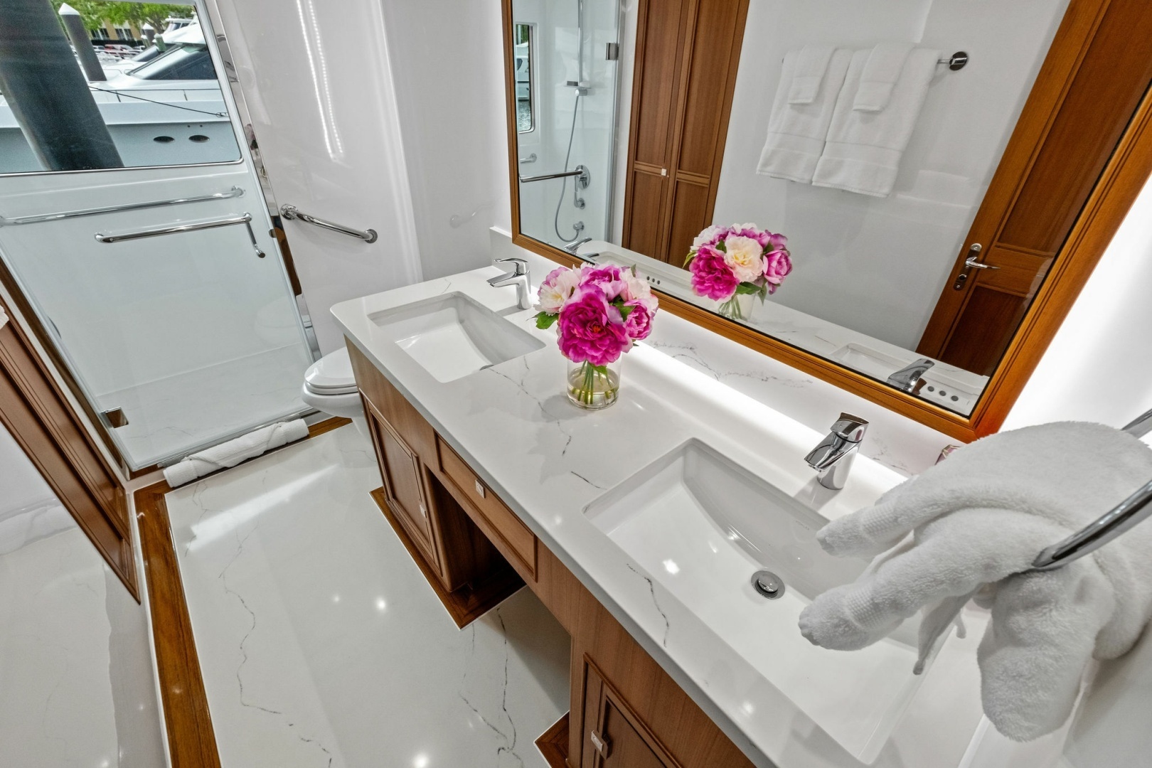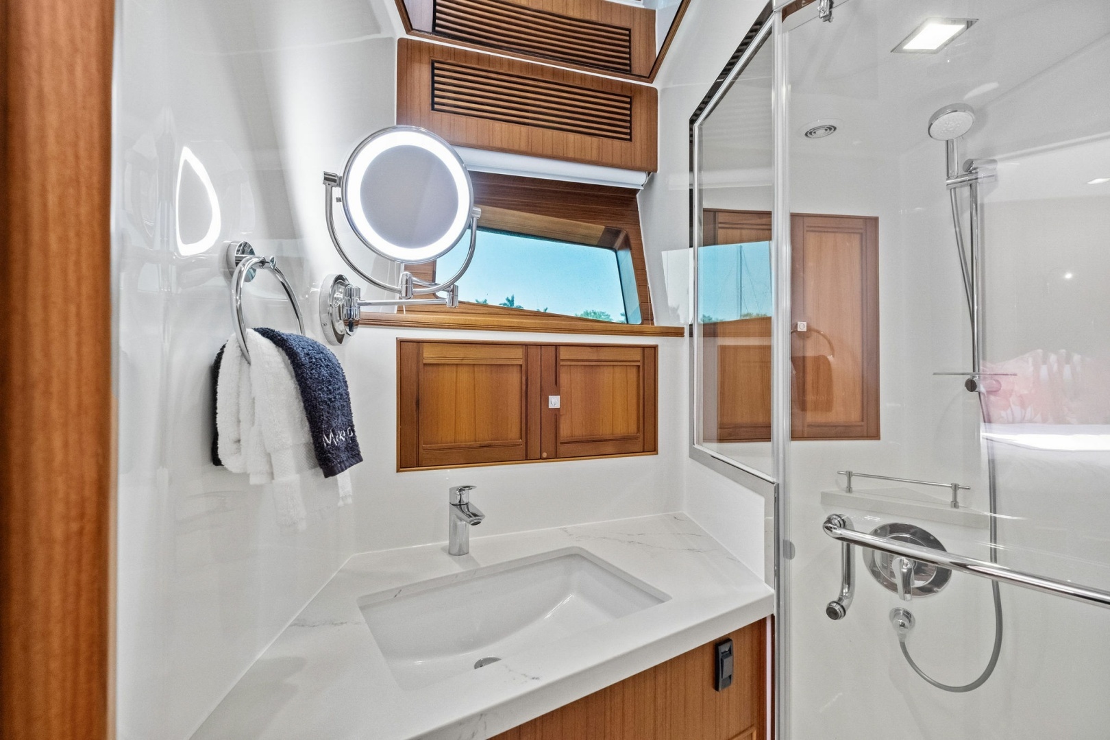 This 2024 90 Marlow Yacht - Artemis II, is arguably one of the best looking boats on the water, a real head turner that graces every dock with timeless elegance and a sporty pedigree. The 90V was designed for both a quick jaunt to a far off destination or a slow cruise between islands in the Bahamas. With an on deck Master and below deck master there are options for all preferences. Three additional guest staterooms, all having en-suite heads, have enough accommodations to bring the whole family. Crew accommodations in this vessels size range are second to none with a generous Queen bed Captains Quarters in the Aft pilothouse and three other bunks located below deck. No expense was spared in the outfitting of this boat in an effort to make life on the water easy for the crew and comfortable for the guests.