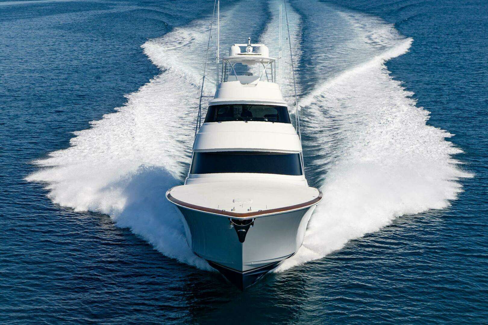 Built on a resin-infused fiberglass hull with a 23’ 2” beam and nearly 200,000 lbs of displacement, the Viking 90 Sky Bridge is engineered for strength, speed, and sea-kindliness. Twin MTU 16V 2000 M96L (2,635 HP each) engines deliver high-efficiency cruising and tournament-level acceleration. The deep-V hull and advanced running surface ensure a soft, dry ride even in demanding offshore conditions.