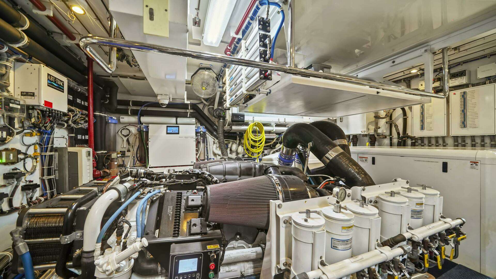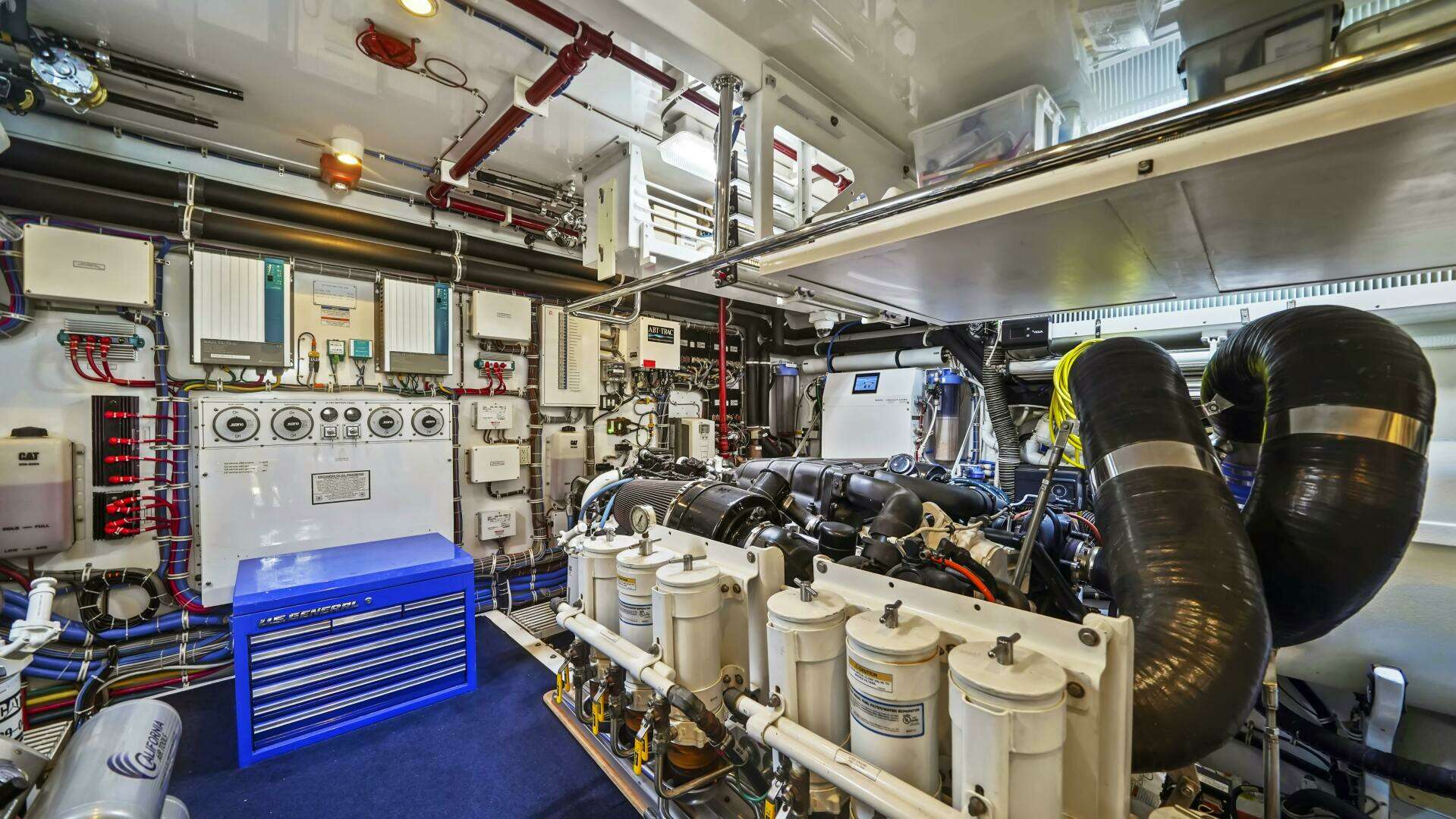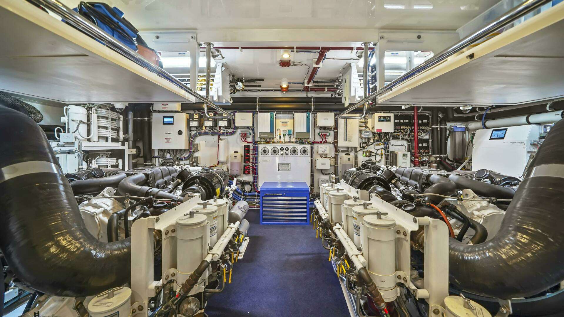 - Zero speed fin stabilization, hydraulic bow and stern thrusters, and dual water makers