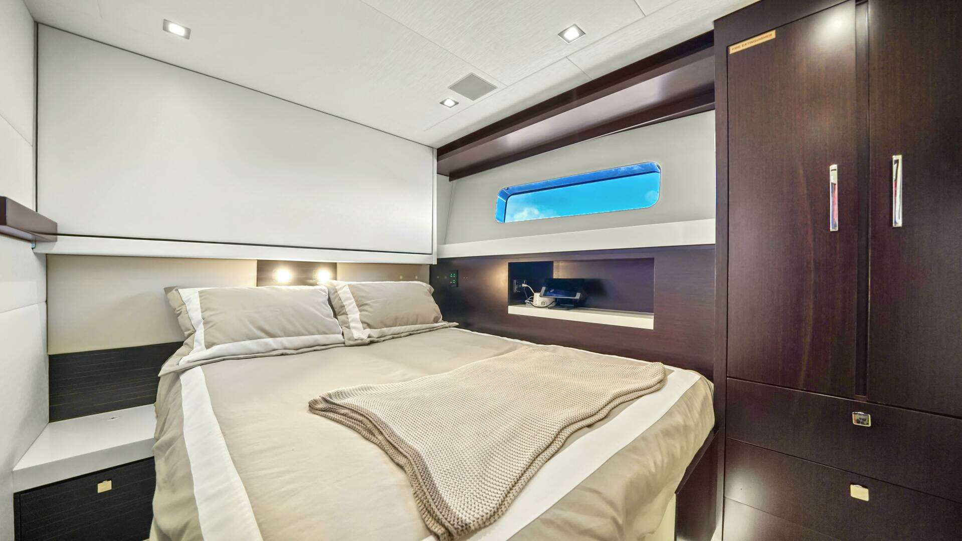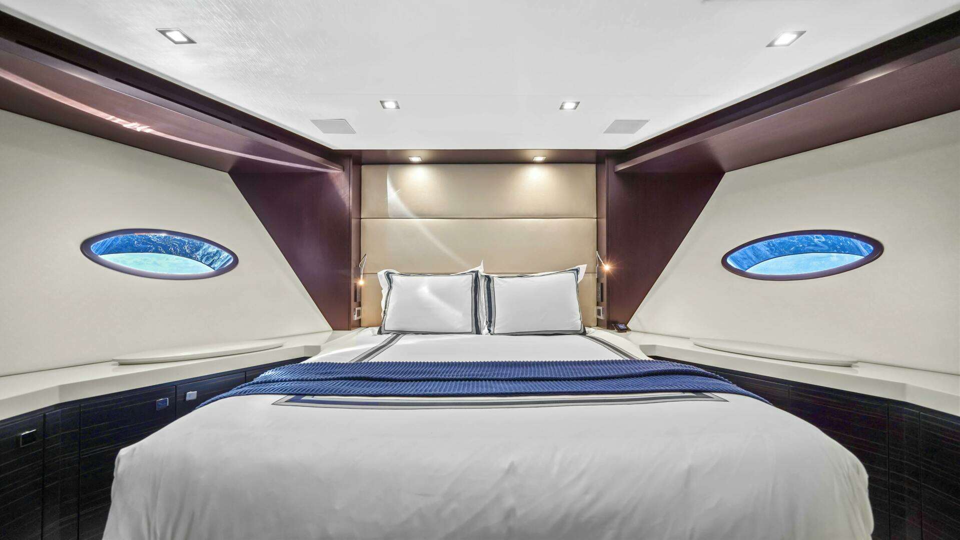 Surplus Lines offers accommodation for up to 10 guests in 4 staterooms on the lower deck, comprising of a full beam master stateroom (amidships), a VIP stateroom (forepeak), and 2 guest staterooms, port and starboard, each with convertible twin beds and a Pullman. She is also capable of carrying up to 3 crew onboard to ensure a relaxed luxury yacht experience.MASTER STATEROOM
