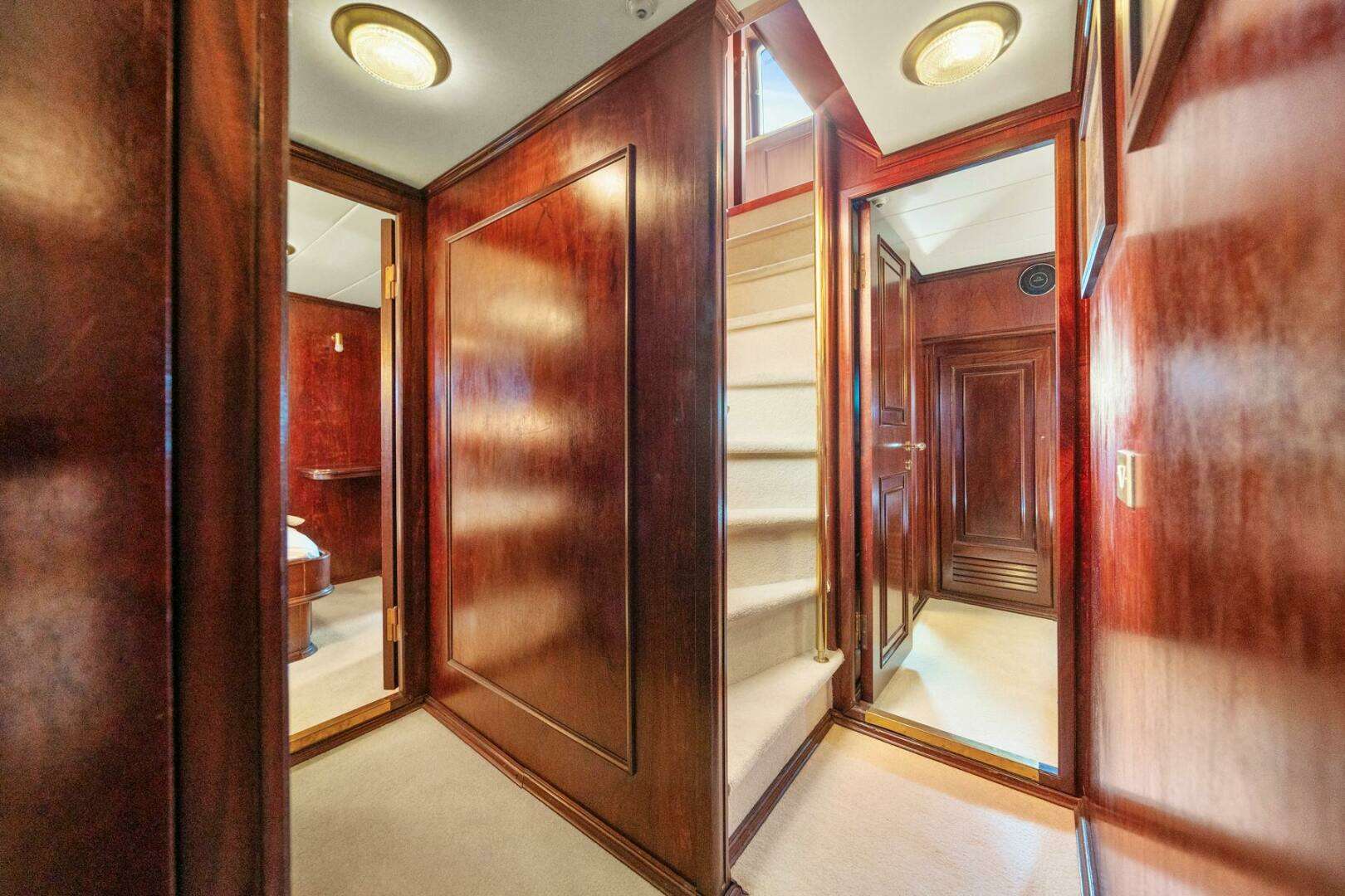 AMMIRAGLIO (built in 1982) is a meticulously maintained classic yacht, offering luxurious accommodations for up to 8 guests across 4 spacious cabins, each with its own en suite bathroom. With generous exterior deck spaces, AMMIRAGLIO is the ideal family cruiser. Her timeless mahogany interior, lovingly preserved by her previous two owners, reflects the elegance of her era.