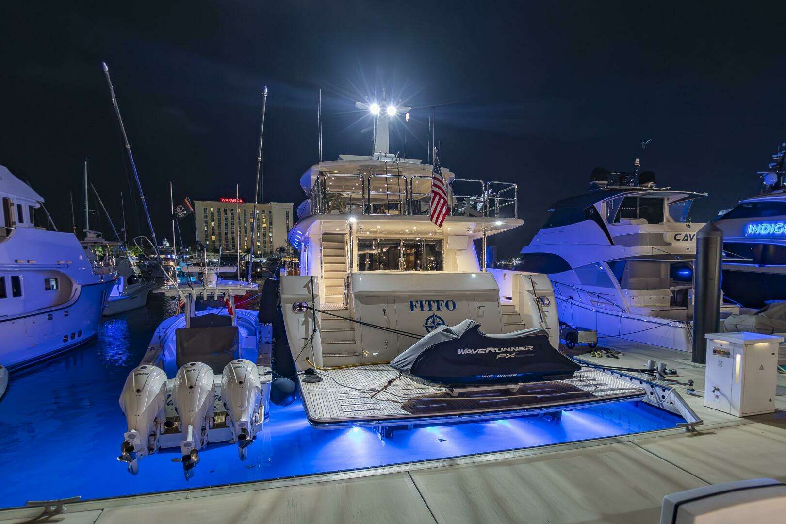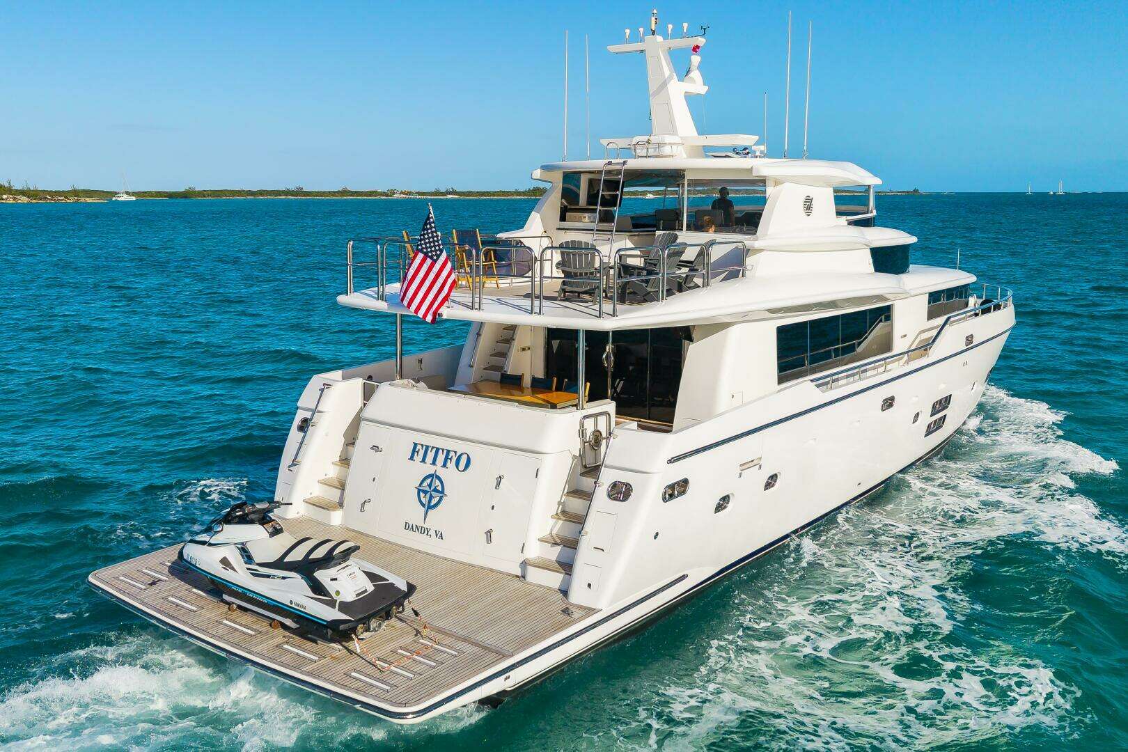 2017 JOHSNON 93’ MOTOR YACHT “FITFO” is hands down one of the most well equipped, clean and turnkey motor yachts on the market today. A two-owner boat, she has never been chartered, just completed am Impressive Yard Period at LMC, maintained and upgraded by Professional Capt and Crew since new. 2017 JOHSNON 93’ MOTOR YACHT unique lines present a distinctive look that stands out among the traditional motor yacht designs. “FITFO” boasts a 4-cabin layout (plus 2 Crew Cabin and Crew Galley with direct engine room access) with an Incredibly spacious On-Deck master cabin. 2017 JOHSNON 93’ MOTOR YACHT key features include a spacious salon with easy access to the galley and on-deck master, a hydraulic swim platform that lowers into the water with a touch of a button, a large flybridge that extends almost two thirds the length of the vessel, and an oversized bow seating area.