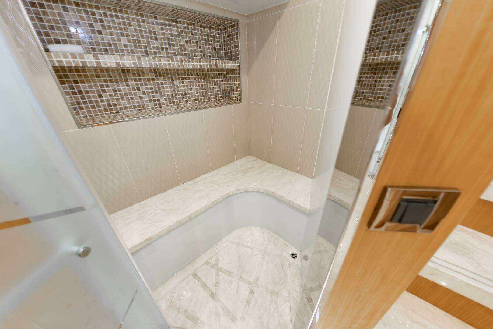 - Accessed via a curved stairway along the Stbd side and open to the Windows above, offering incredible lighting that highlights this amazing space.