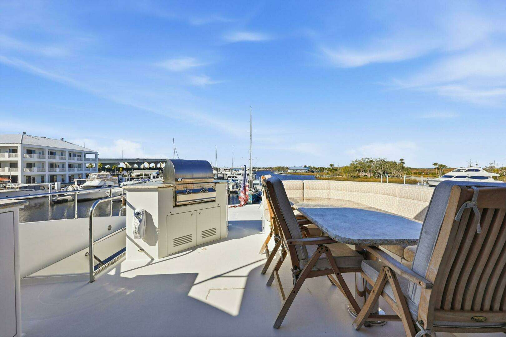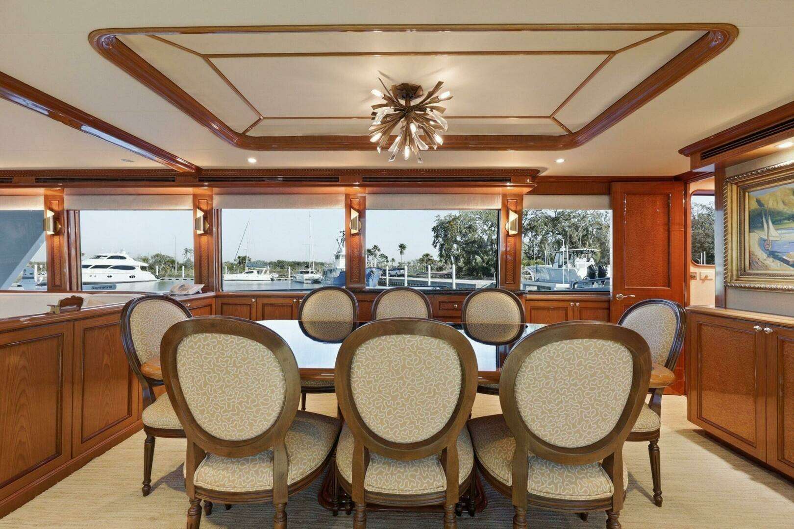 Upgraded Garmin electronics suite includes Four Garmin 8617's, radar, autopilot, and AIS for effortless command from the raised pilothouse or flybridge helm.
