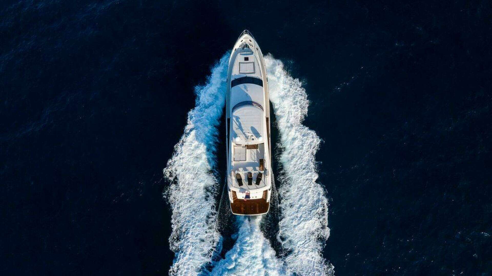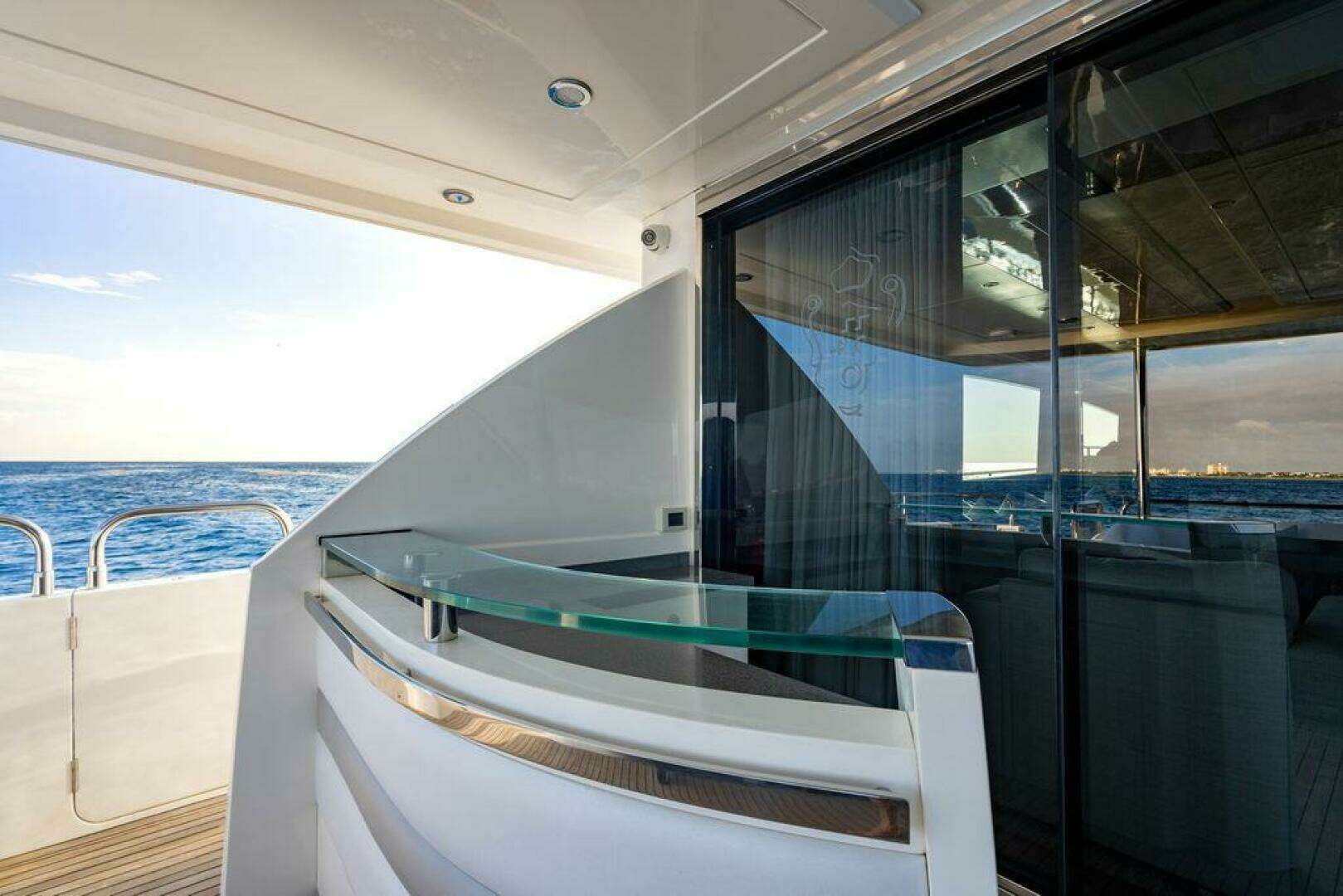 - Spacious flybridge with wet bar, grill, and sunbathing areas