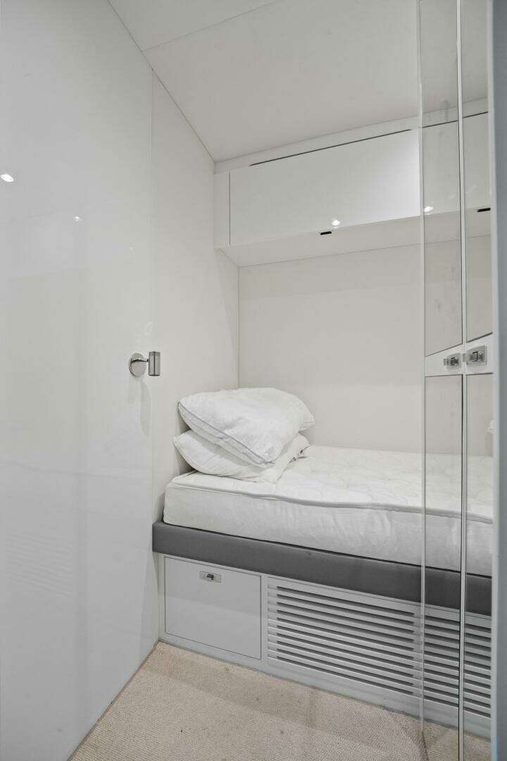 - Crew cabin 1 with single bunk, wardrobe and storage lockers