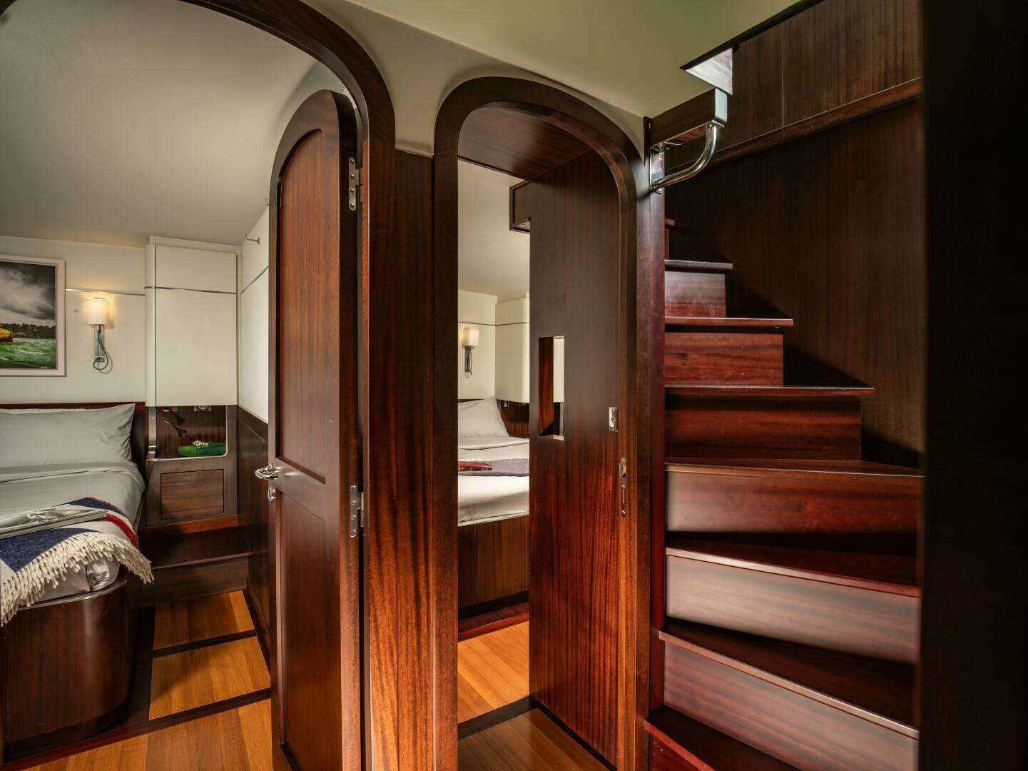LA FENICE accommodates up to nine guests in four ensuite staterooms. Her guest accommodation comprises three double staterooms and a triple berth (a double bed and a pullman) for younger guests. Styled in a classic fashion, each stateroom exudes elegance and sophistication with a neutral colour palette and rich wood finishes.
