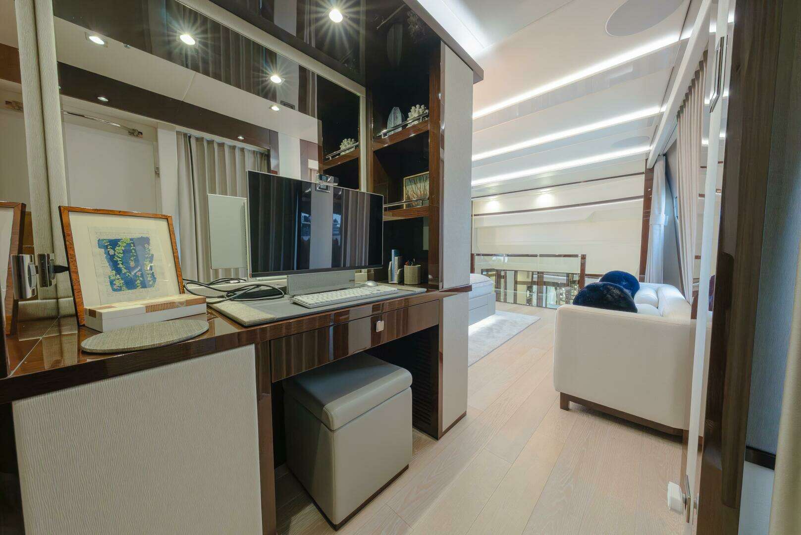 REUNION is a stunning example of the 2019 Sunseeker 95 Yacht, offering a perfect fusion of luxurious interior design and expansive exterior spaces. With thoughtful craftsmanship and modern amenities, this yacht distinguishes itself as a top-tier vessel in its class. The five-stateroom layout, including the rare feature of an on-deck master suite, delivers an exceptional blend of comfort, privacy, and convenience, an offering seldom found on yachts of this size. Every cabin is designed to meet the highest standards, ensuring an experience of refined elegance for owners and guests alike.