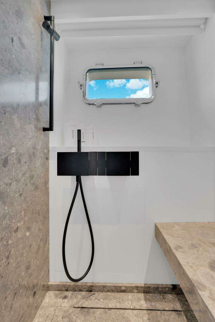 Accommodation includes an on-deck Owner’s Suite with a king-size bed and ensuite shower, two VIP Suites with queen beds and ensuite heads, and two convertible guest staterooms with twin beds that can be converted into queens, both with ensuite heads.