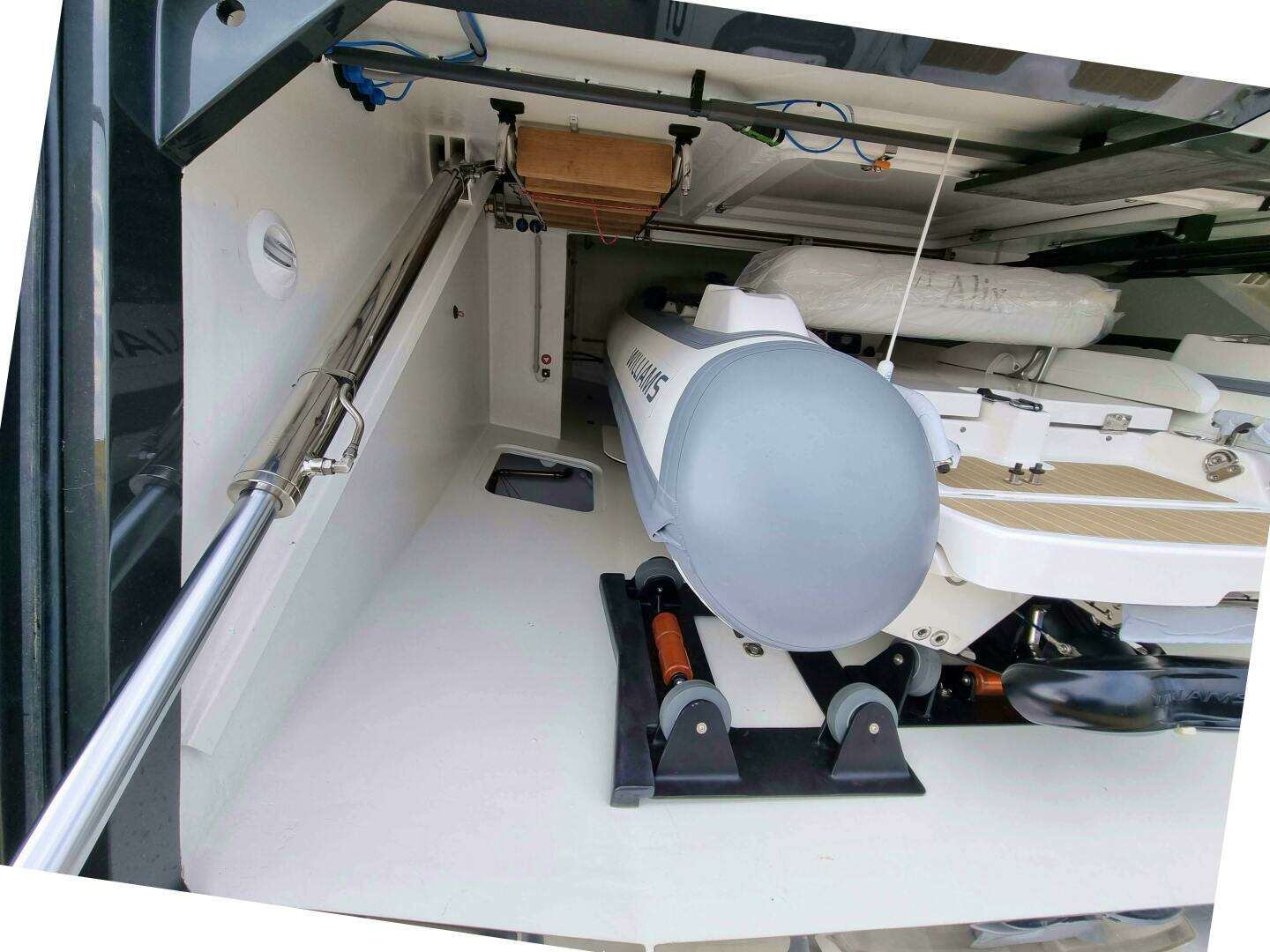 The dinghy garage has a launch and retrieval system including hydraulic winch and 3 pairs of fixed rollers in garage.